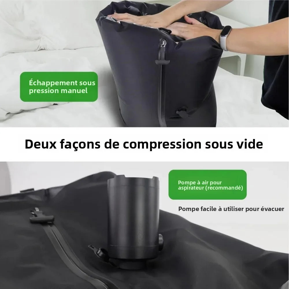 Réduisez le volume de vos vêtements jusqu'à 80% grâce à la technologie sous vide sans pompe.